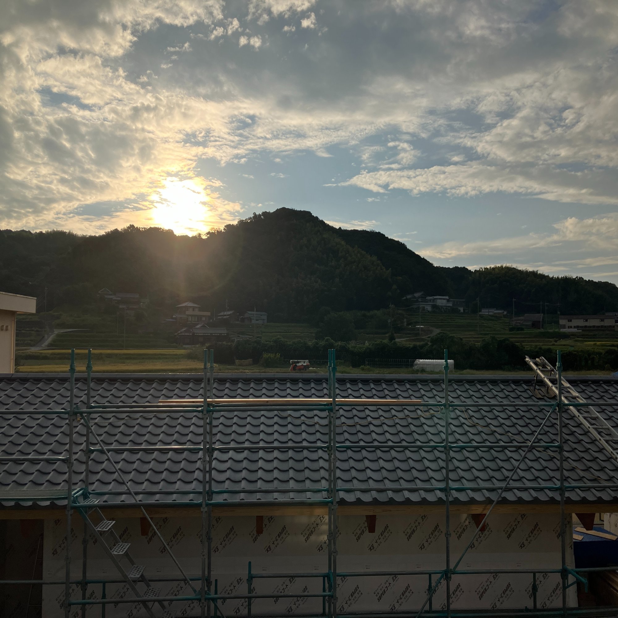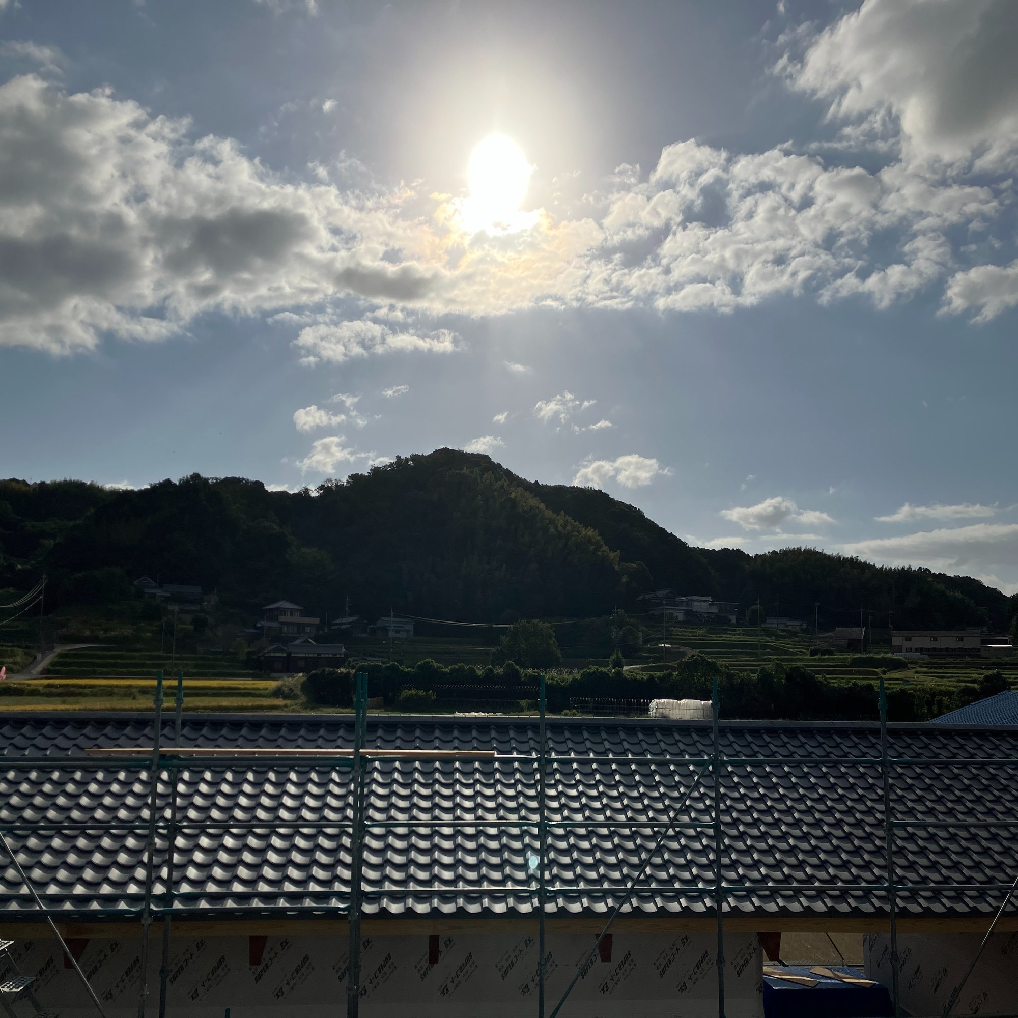 この建物は東の裏山方向に開けているので、朝日から日が高くなるまで、とても陽がよく当たる、それによって瓦にあたる光の方向が変わり色々な場面をみせてくれます。この風景は母屋からよく見えるので、家族(特に子どもたち)はこの風景を見ながら日々を過ごし成長します。このことがどんな影響を与えるかはわからないけれど、とてもいいことだと感じています。