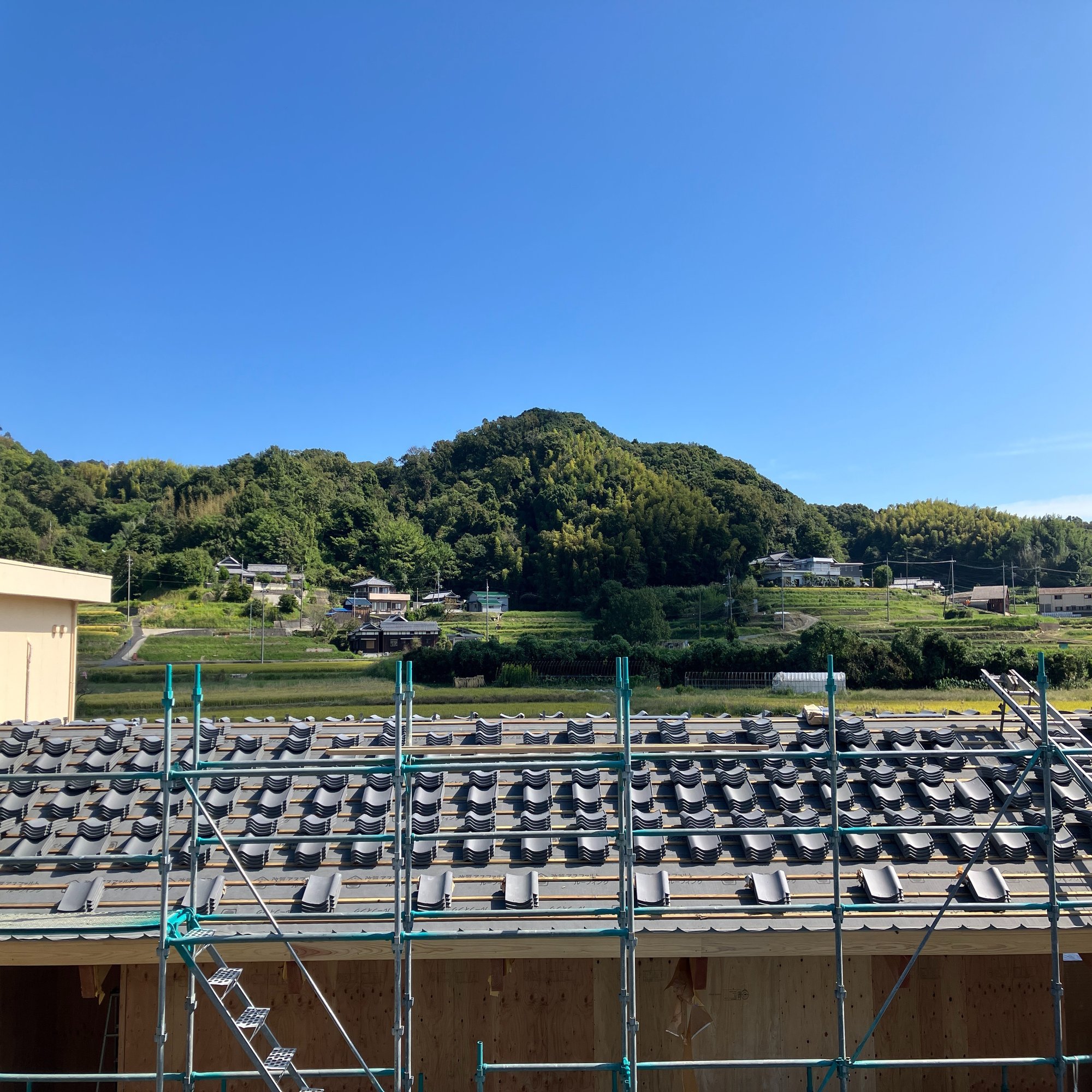 メインの屋根である瓦葺きが完成しました。